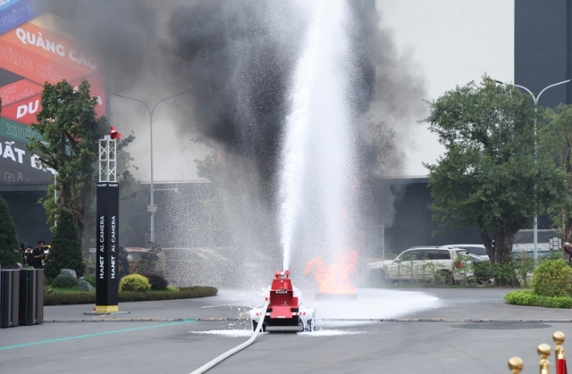 Trình diễn Robot chữa cháy do Đại học Phòng cháy Chữa cháy phát triển - Ảnh: VGP/Gia Huy