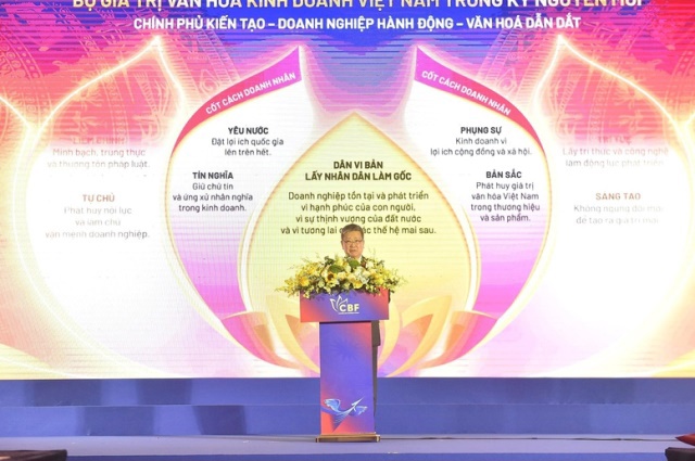 Tại Diễn đàn hôm nay, Phó Thủ tướng chính thức phát động và kêu gọi cộng đồng doanh nhân, doanh nghiệp Việt Nam thực thi và lan tỏa Bộ Giá trị văn hóa kinh doanh Việt Nam trong kỷ nguyên mới, góp phần xây dựng cộng đồng doanh nghiệp Việt Nam liêm chính, sáng tạo, trách nhiệm và hội nhập, đóng góp vào mục tiêu phát triển đất nước phồn vinh, hạnh phúc.