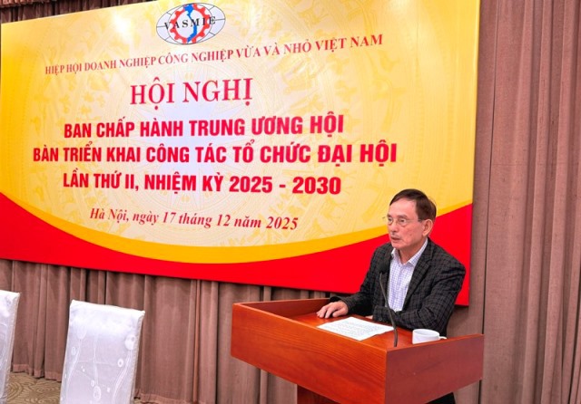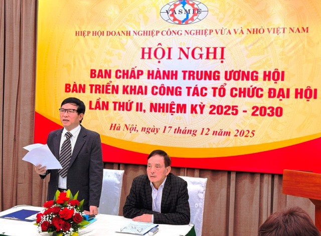 Sáng ngày 17/12/2025, tại Thủ đô Hà Nội, trong không khí khẩn trương và trang trọng, Hiệp hội Doanh nghiệp công nghiệp Vừa và Nhỏ Việt Nam đã tổ chức Hội nghị trù bị Ban Chấp hành Trung ương Hội nhằm bàn thảo, thống nhất các nội dung trọng tâm triển khai công tác tổ chức Đại hội lần thứ II, nhiệm kỳ 2025–2030. Hội nghị dưới sự chủ trì và điều hành của ông Nguyễn Xuân Sơn – Chủ tịch Hiệp hội và ông Nguyễn Văn Đừng – Phó Chủ tịch Thường trực Hiệp hội, với sự tham dự đông đủ của các ủy viên Ban Chấp hành, Ban Cố vấn. Đây là sự kiện chính trị quan trọng, đánh dấu bước chuẩn bị then chốt cho sự kiện lớn của cộng đồng doanh nghiệp công nghiệp vừa và nhỏ Việt Nam sẽ diễn ra vào ngày 30/12/2025.